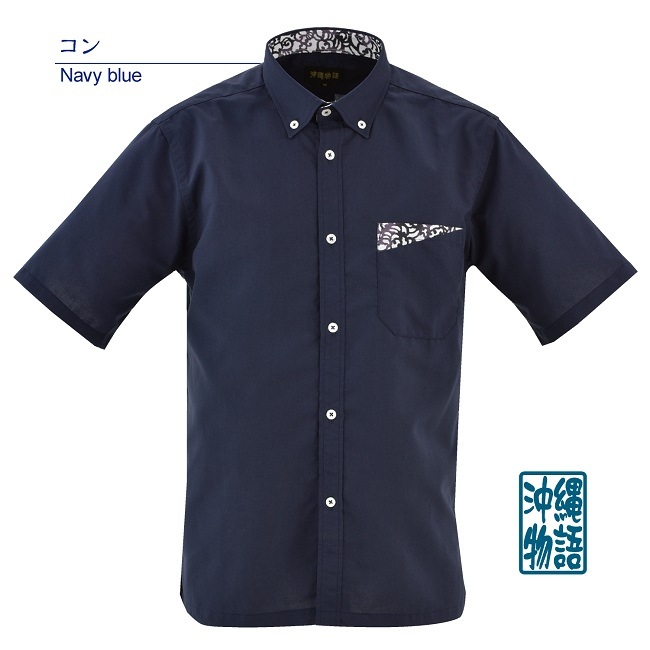 【数量わずか】OK1850B メンズ <紅型ジンベイ柄使い> ボタンダウン
