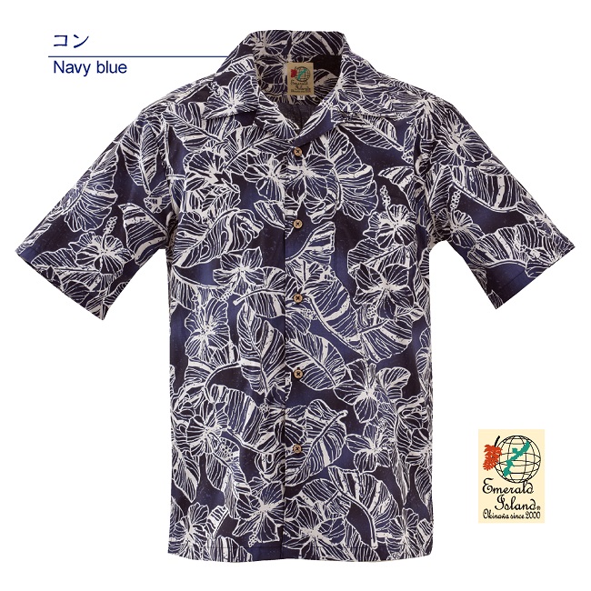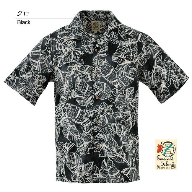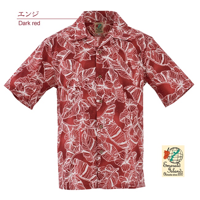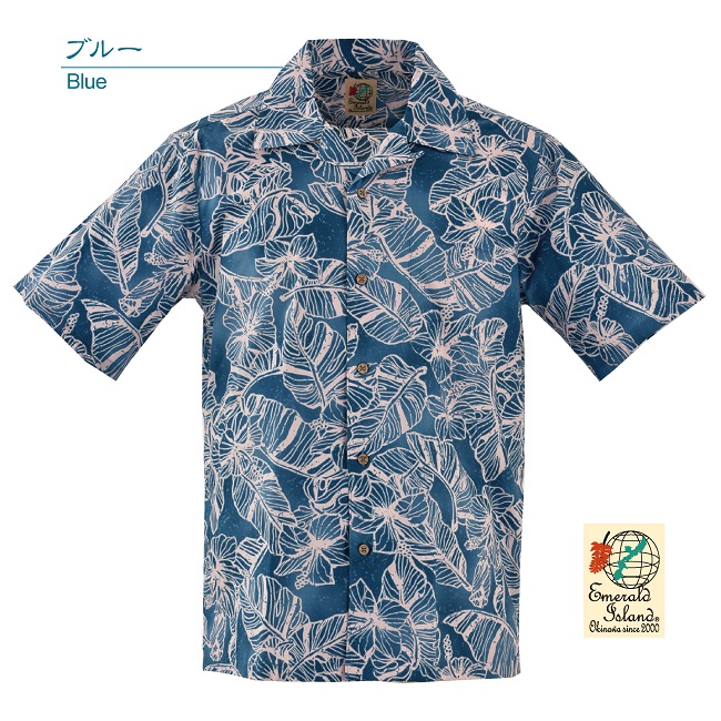 EM1889K メンズ <ハイビモンステラ柄> 開襟