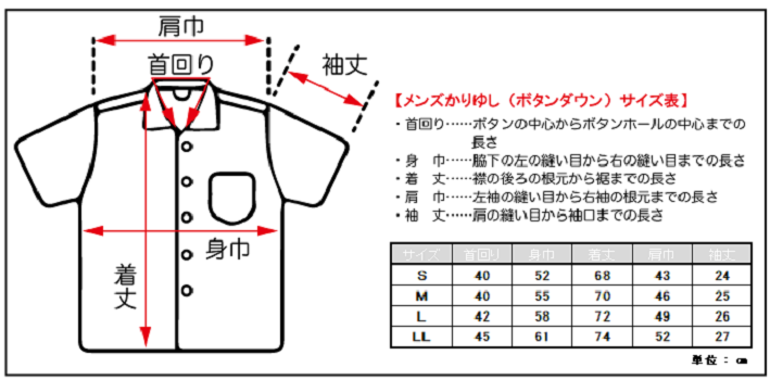 ※お手持ちのシャツとサイズを比較されますと大きさのイメージがつかみやすいと思います。