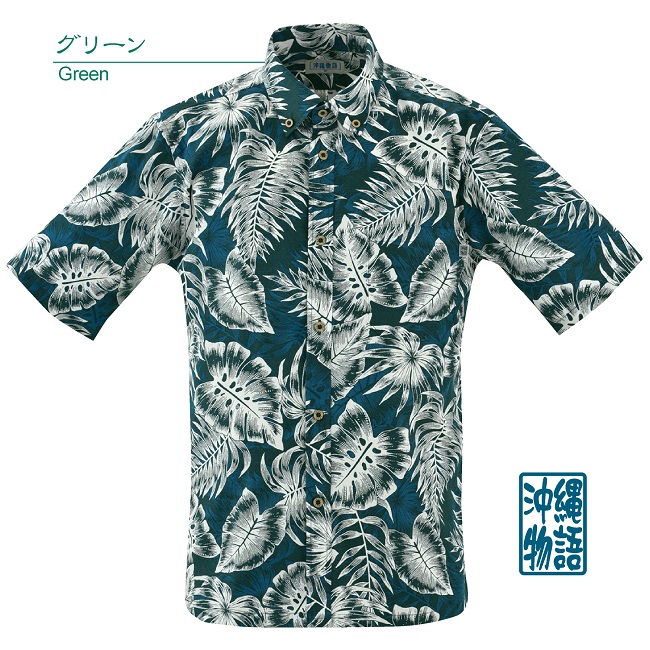 OK1860B メンズ <ヤシ・リーフ柄> ボタンダウン