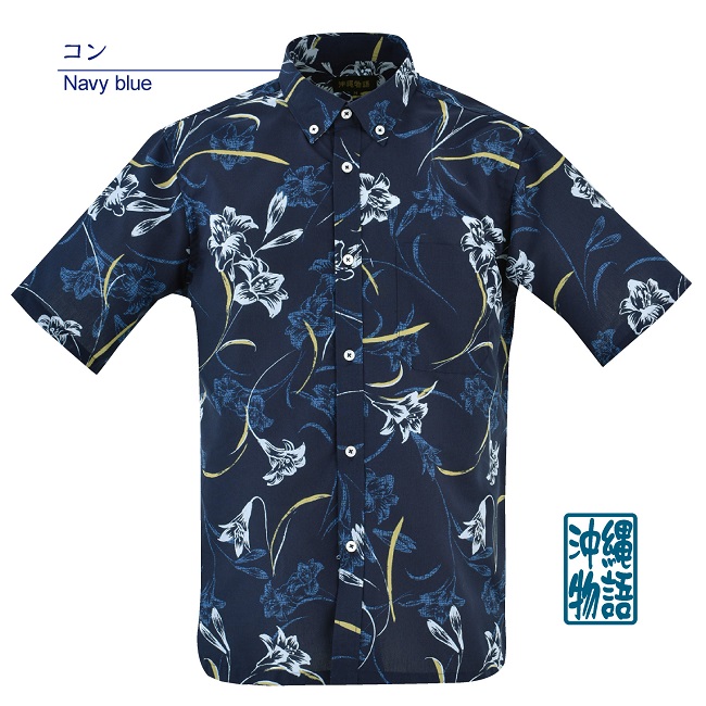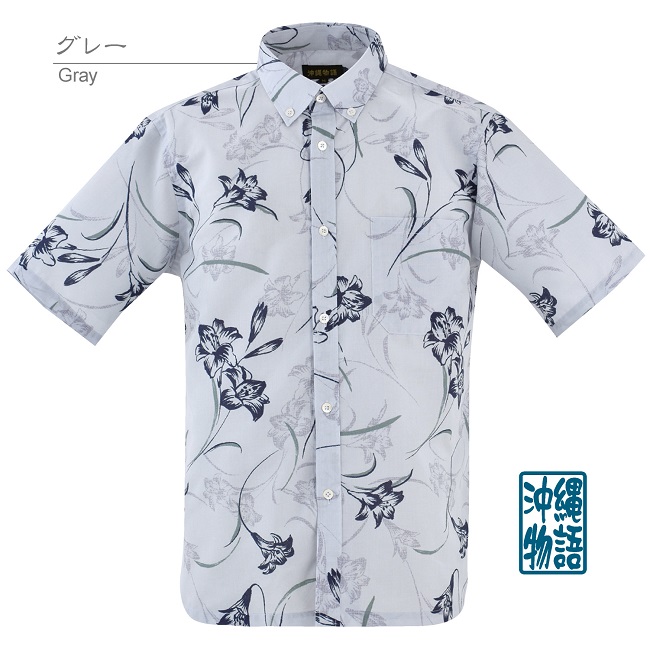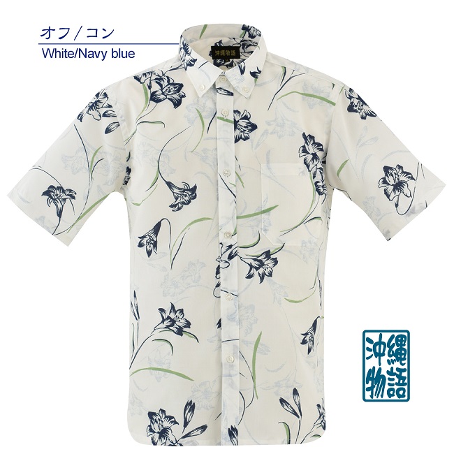 OK1866B メンズ <テッポウユリ柄> ボタンダウン